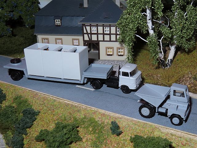 ![]() IFA W50L/S-Sattelzugmaschine mit Hädl Manufaktur Schwerlasttieflader ST8 (HLS 110.29) und Raumelement RE 80 TT-Koch Dumper Dutra DR-50D Old Europe modellcars |