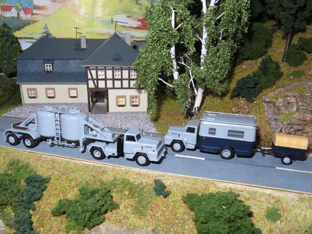 ![]() IFA W50 Pritsche mit Ladekran Hädl Manufaktur und Vibrations-Anhängewalze SVAW 25 sixTTies sowie Mercedes Benz Kipper TAM |