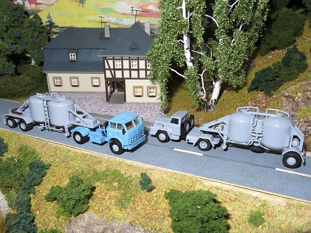 ![]() Autobuzul TV12M Kleinbus und IFA H6Z Zugmaschine Pr./ Pl. Studio ALi 2x Zementanhänger mit Doppelsilo Permo |