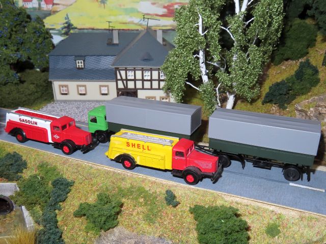 ![]() Büssing 8000 Tankwagen "Shell" und "Gasolin" sowie Alexander MAN 16.192 Lastzug mit Wechselpritschenaufbauten Schirmer |