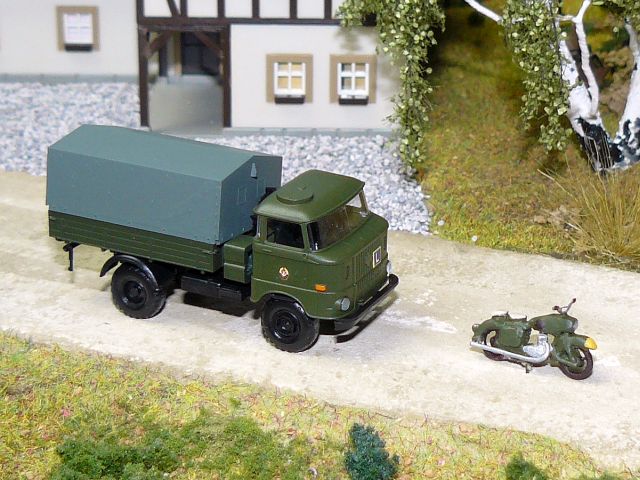 ![]() IFA W50LA/A Kurzpritsche/ Plane Fahrschulwagen der GST Hädl Manufaktur/ auTTos.de und Motorrad MZ ES 150 der Gesellschaft für Sport und Technik (GST) Permo |