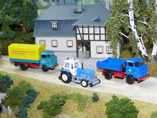 ![]() IFA W50 Pr./ Pl. "Hungarocamion" und IFA W50 Dreiseitenkipper "VEB Kohlehandel" Hädl Manufaktur Zweiwegefahrzeug Fortschritt ZT 300-E Busch |