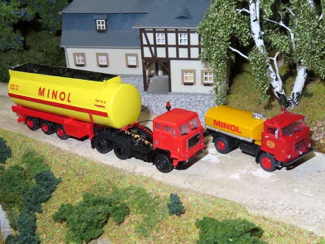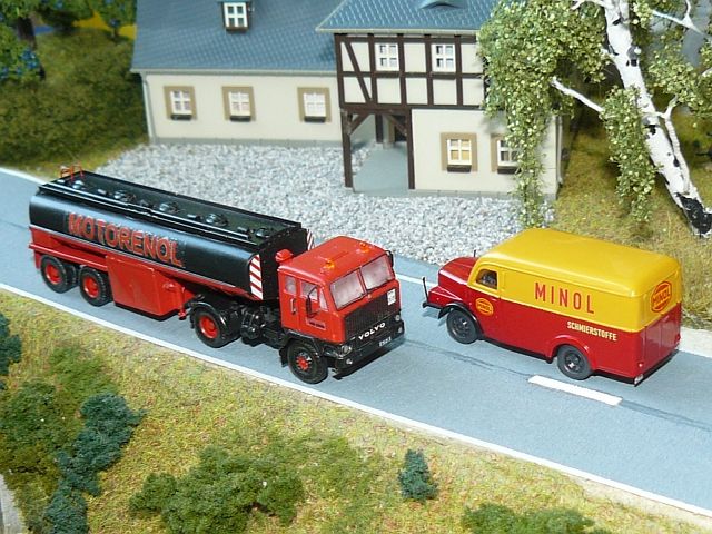 ![]() Volvo F89 "Minol" mit CN-22-Tankauflieger "Motoröl" Stepnicka (gebaut von Ralph Lusansky) und IFA H3A Koffer "Minol" Studio ALi |