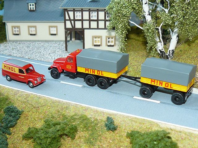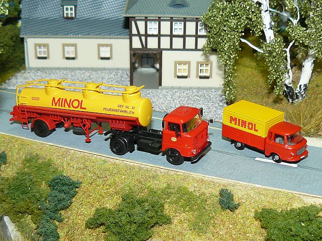 ![]() IFA G5 Pr./Pl.-Lastzug "Minol" und TAM Framo V901 Kastenwagen "Minol" Busch |