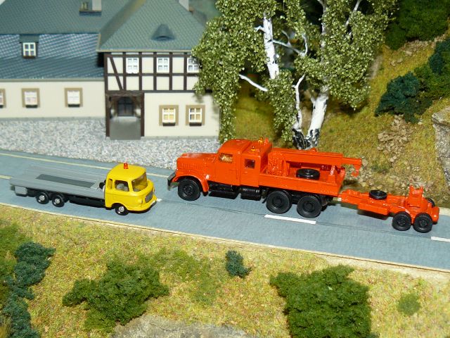 ![]() Barkas B1000 Abschleppwagen und Jano Modellbau KrAZ 257 mit Zusatzkabine und Spezialaufbau als Bergefahrzeug mit Bergeachse TAM |