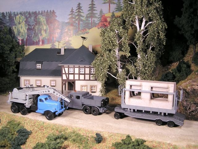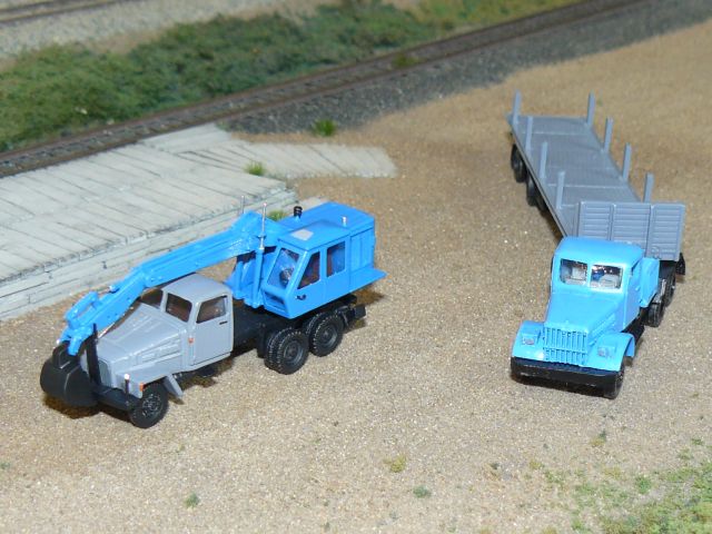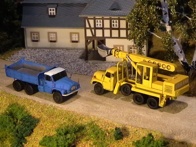 ![]() Zil 157 mit Bleichert-Kranaufbau PERMO Tatra 141 mit Tieflader P32 und Plattentransportgestell KPG-25 TAM |