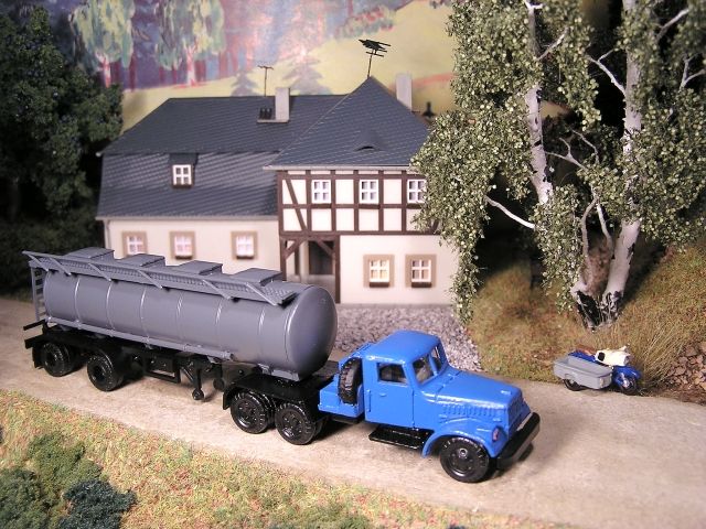![]() KrAZ-Zementsattelzug TAM MZ ES 250 mit MZ-Lastenseitenwagen PERMO |