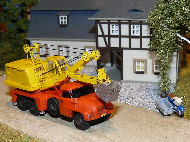 ![]() Tatra 138 D-032 Autobagger mit Tieflöffel Stepnicka MZ ES 250 mit Lastenseitenwagen Permo |