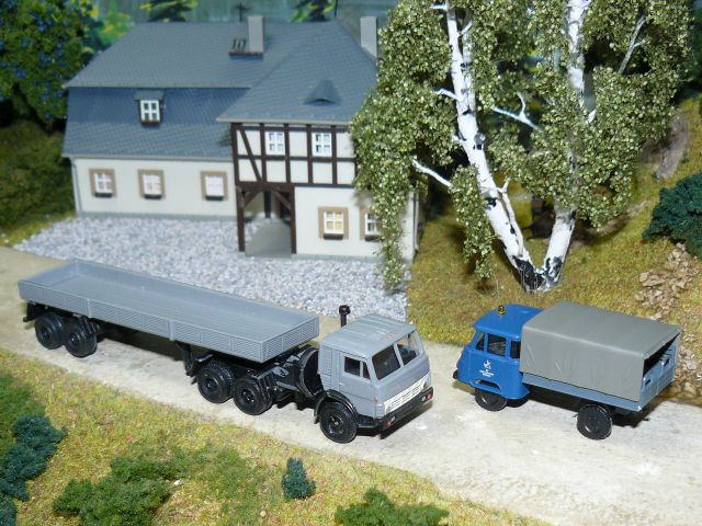 ![]() Kamaz 5410 Sattelzugmaschine mit Pritschenauflieger OdAZ-9370 Studio ALi und Robur LO 1801 "VEB Spezialbaukombinat" Tillig |