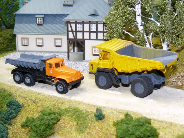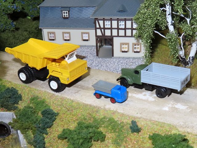 ![]() Großmuldenkipper BelAZ 540A, USM Zis-150 Hochbordpritsche Z+Z Exclusive Modell und Multicar M21 Muldenkipper Busch/ Mehlhose |
