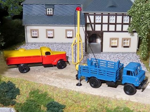 ![]() Zis-150 Tankwagen mit einem Dom Z+Z Exclusive Modell und Mastlochbohr- und -setzgerät BM-202 auf GAZ-66 der SDAG Wismut Studio ALi |