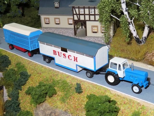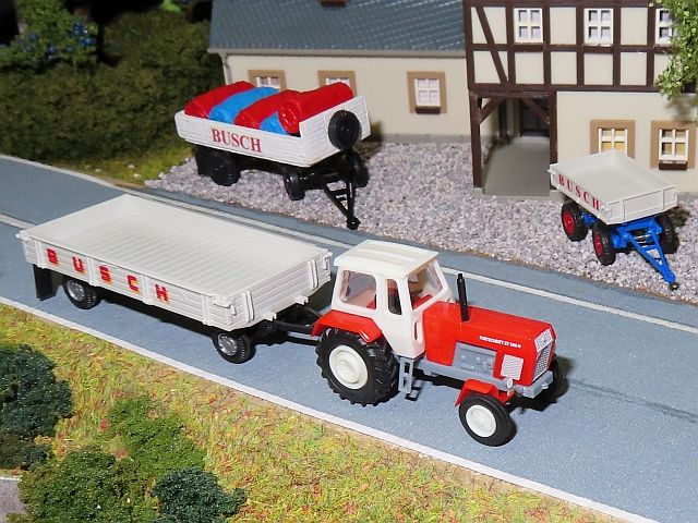 ![]() Traktor ZT 300 und Heu- oder Strohballenanhänger sowie Futteranhänger Busch Zeltplanenanhänger Permo |