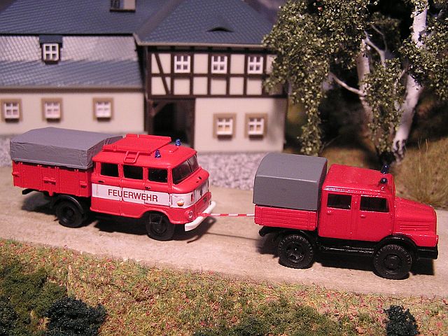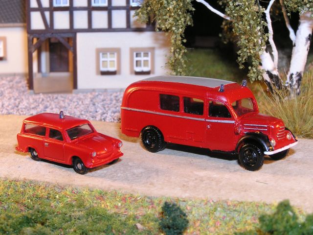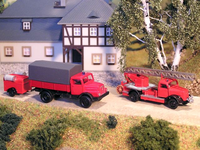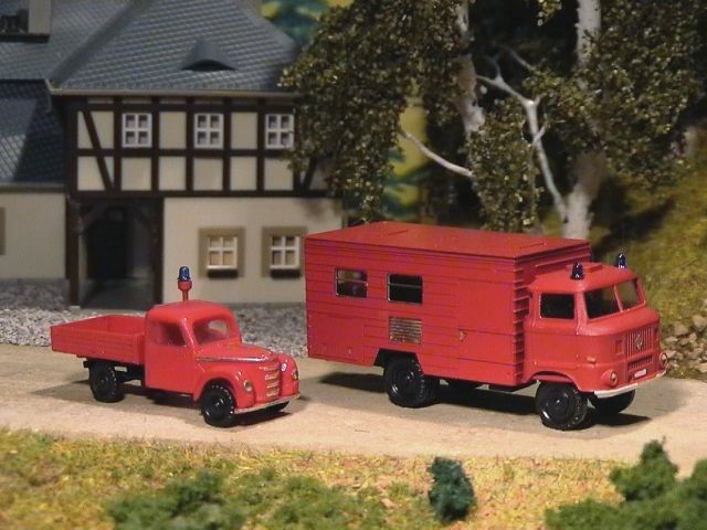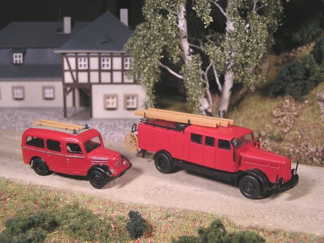 ![]() S4000 Einsatz-LKW mit RK-Modelle Tragkraftspritzenanhänger TSA 8 und Opel Blitz Drehleiter V&V model |