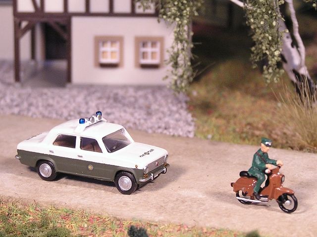 ![]() ABV auf Moped Simson Schwalbe Jano Modellbau Lada 1200 Deutsche Volkspolizei V&V model |