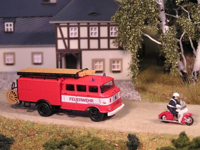 ![]() IFA W50 LF 16 mit "Bauchbinde" Hädl´s Manufaktur Brandmeister auf MZ ES 150 PERMO |