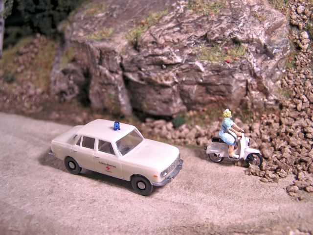 ![]() Wartburg 353 DRK-Hilfszug Tillig Schwester Agnes auf Moped Simson Schwalbe Jano Modellbau |