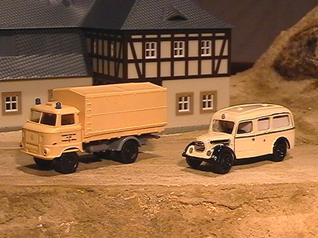 ![]() G 5 CO²-Löschfahrzeug (Flughafen Leipzig) und Robur Schlauchwagen Jano Modellbau |