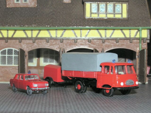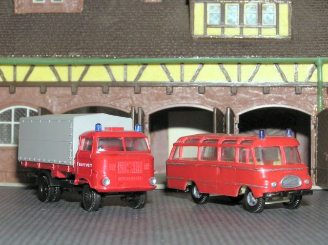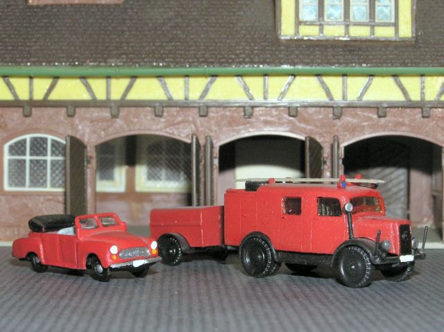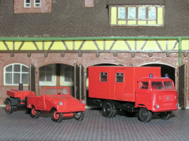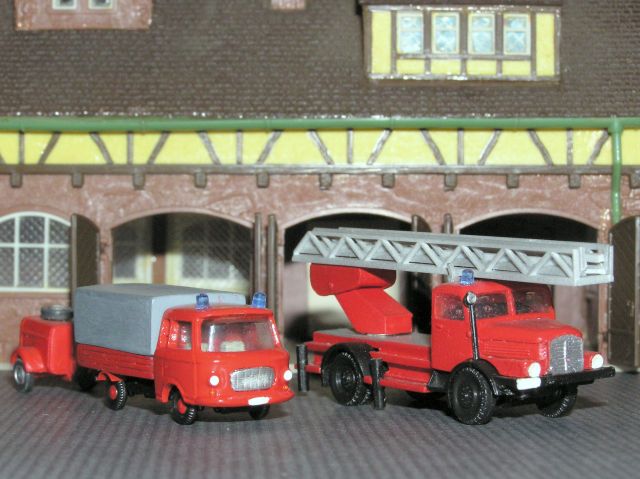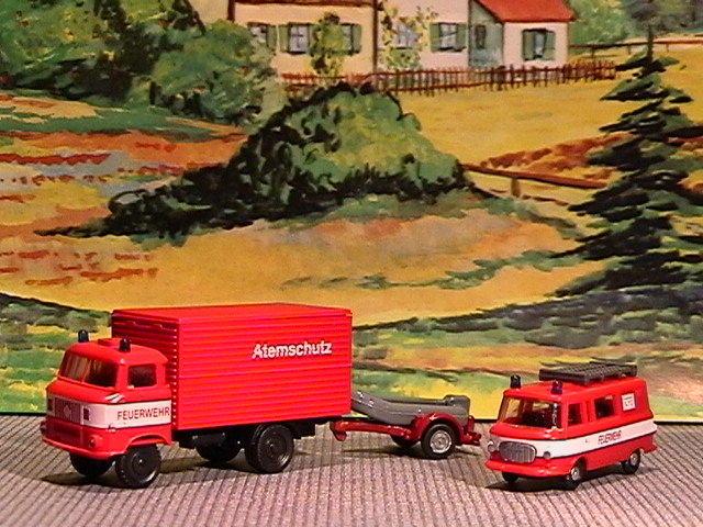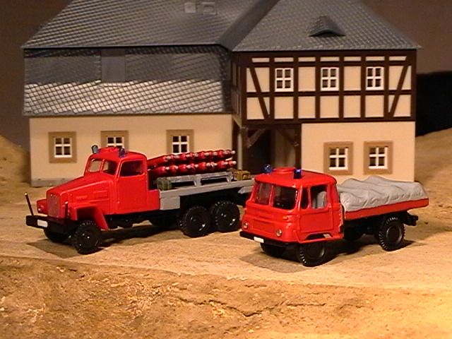 ![]() G 5 Werkstattwagen und LF 8-TS 8 auf Robur LO 1801A mit Schlauchtransportanhänger Jano Modellbau |