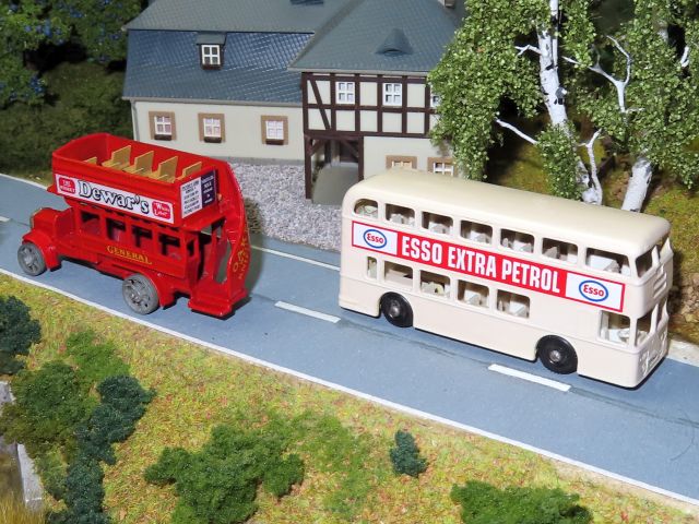 ![]() 1911 LGCO B-type London Bus "The Whisky Dewar´s White Lable" und Daimler Fleetline London Bus "ESSO" Matchbox |