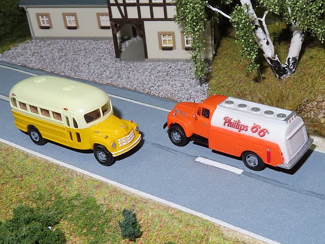 ![]() 1949 Studebaker 2R Bus und 1948 Ford F-5 Tankwagen "Phillips 66" RailTT |