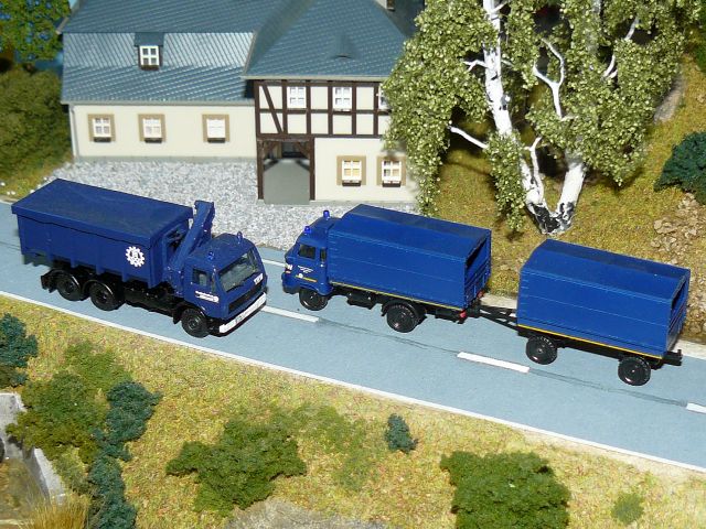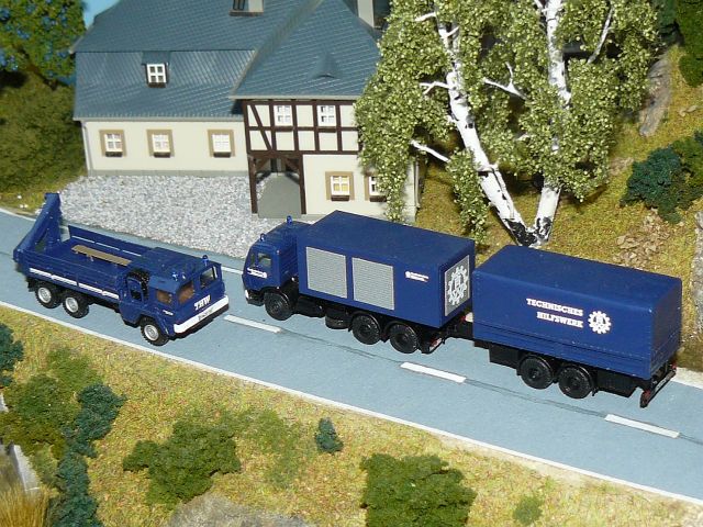 ![]() Mercedes-Benz 1622 Absetzkipper mit Ladekran des THW und TAM W50 Pr./ Pl. mit Anhänger des THW Modelltec |