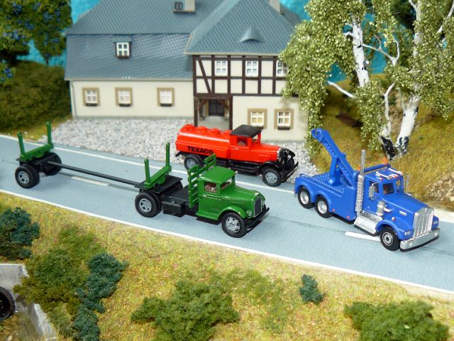 ![]() Mack BX Langholztransporter, 1929 Autocar Dispatch Tankwagen "TEXACO" und Kenworth W-900 Abschleppwagen RailTT |