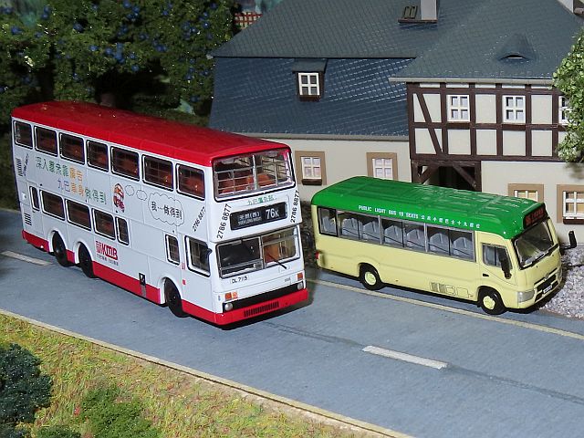 ![]() Metro Cammell Weymann (MCW) Metrobus Mk II (11m) Kowloon Motor Bus (Hong Kong) und Toyota BZB70R Coaster LPG Green Minibus (Hong Kong) 80M Creative Model |