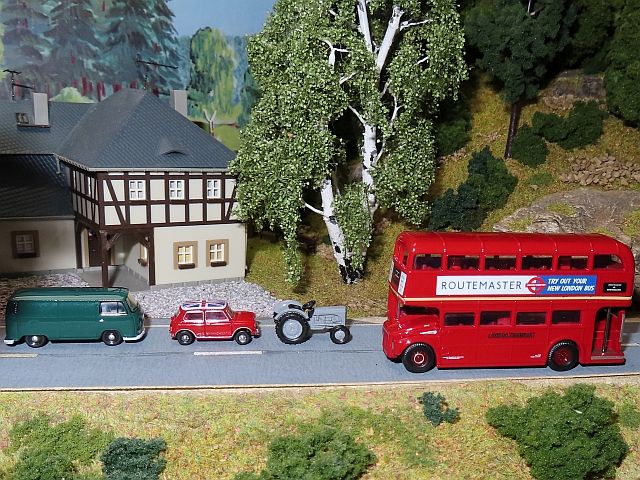 ![]() VW T2a Kastenwagen, Mini Cooper Mk I, Traktor Ferguson TEA-20 und AEC Routemaster Park Royal London Transport Oxford Diecast |