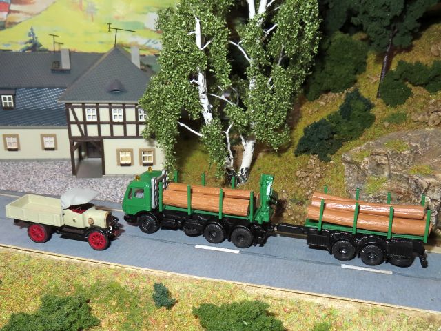 ![]() Oldtimer-LKW (ähnlich Horch) mit Pritsche Permo Mercedes-Benz 1622 Holzlaster mit Ladekran TAM |