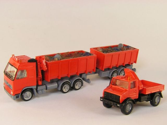 ![]() Volvo FH16 Absetzkipper mit Anhänger und Unimog Pr. mit Ladekran Stadtwerke TAM |
