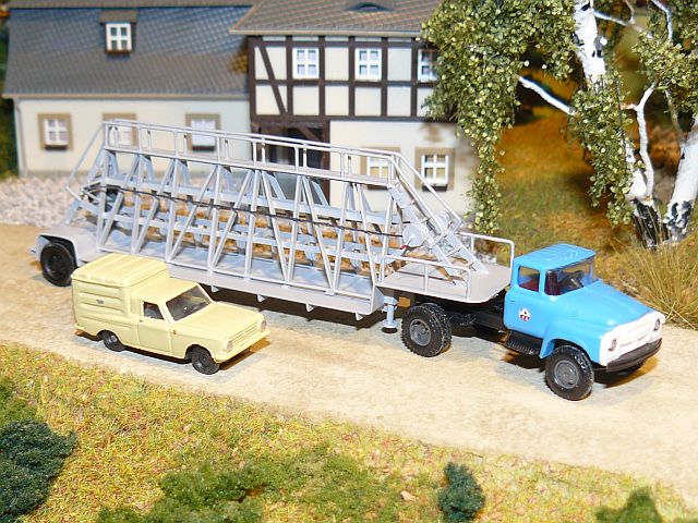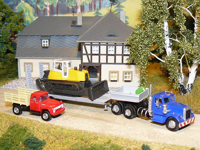 ![]() Zil 130 Sattelzugmaschine a.d.p. mit Schwerlastauflieger für Betonfertigteile und Kleintransporter Izh 2715 RailTT |