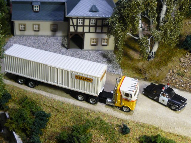![]() 1967 Freightliner FLB mit Auflieger "YELLOW" und 1952 Ford Customline Police RailTT |