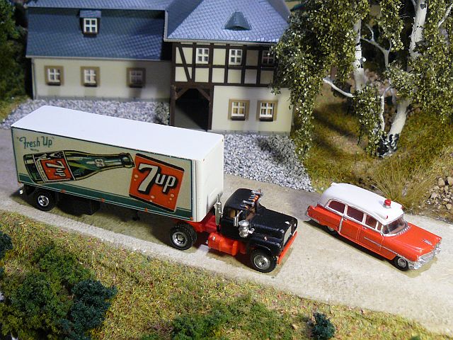 ![]() 1966 MACK R685 mit Auflieger "7 UP" und 1955 Cadillac Ambulance RailTT |