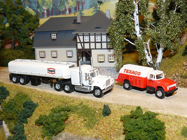 ![]() 1966 Mack R-670 Sattelzugmaschine mit Tankauflieger "TEXACO" und 1954 Ford F-500 Tankwagen "TEXACO" RailTT |