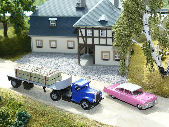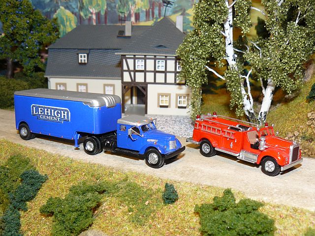 ![]() 1940 International K7 mit Auflieger "LEHIGH CEMENT" und 1953 MACK B-61 Löschfahrzeug mit offener Kabine RailTT |