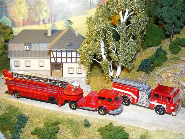 ![]() Pierce Dash Pumper und Matchbox America LaFrance Drehleiter der Feuerwehr von San Diego Tomica |