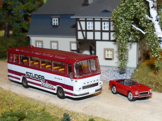 ![]() Honda S-800 (ca. 1:110) Hergestellt für Lawson SETRA S110H Reisebus "STUDER Reisen" etchIT Modellbau |