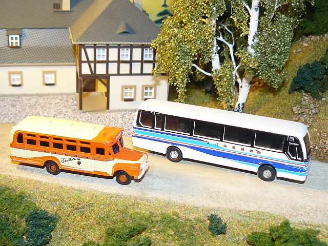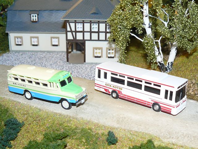 ![]() 1967 Isuzu BXD30 Bus und 1995 Hino Blue Ribbon Bus KC-HU3KPCA hergestellt für Lawson (ca. 1:130) |