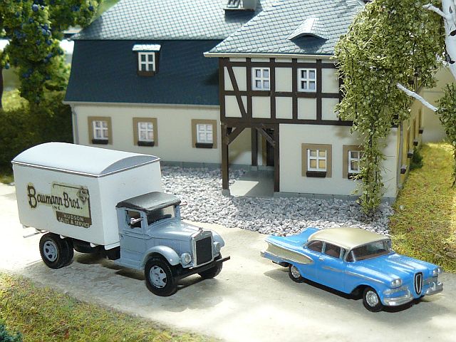 ![]() 1932 Mack BX Koffer "Baumann Bros. Inc." und 1958 Edsel Pacer RailTT |
