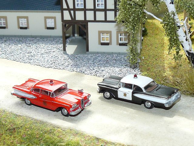 ![]() 1958 Edsel Pacer Fire Dept. CHIEF und 1958 Edsel Pacer Police RailTT |