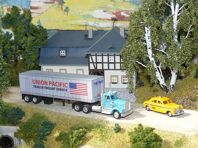 ![]() Kenworth W900 mit Auflieger "Union Pacific" und 1949 Dodge Meadowbrook Taxi RailTT |