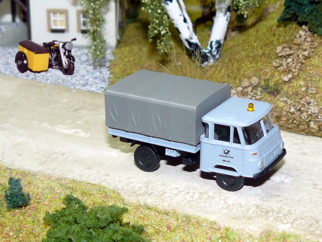 ![]() EMW R38 Postmotorrad mit Lastenseitenwagen PERMO und Robur LO 3000Pr./Pl. "Deutsche Post Fernmeldewesen" Tillig |