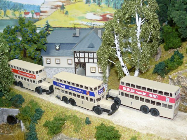 ![]() Büssing D 38 Doppelstockbusse der Berliner Verkehrsbetriebe (BVG) mit diverser Werbung Alexander |