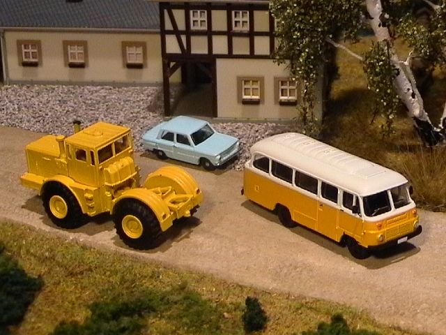 Traktor Kirowez K701 und Saporoshez 968A Studio ALi/ Hobby-Shop L-K Robur LO3000 Bus Jano Modellbau |