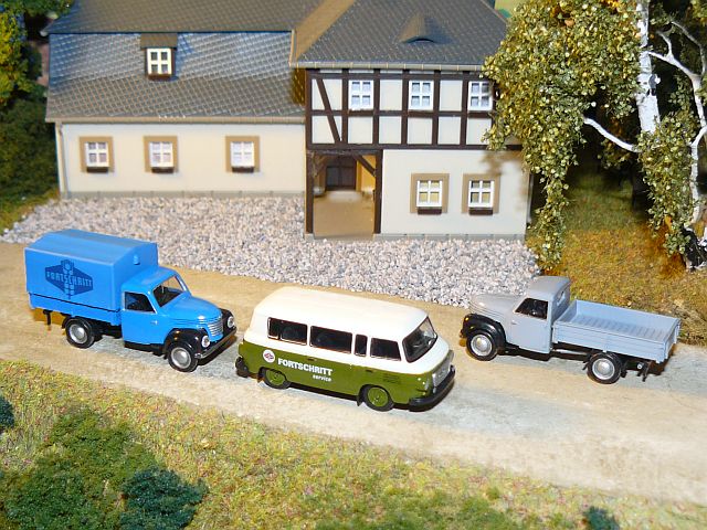 Framo V 901/2 mit und ohne Plane und Barkas B1000 "FORTSCHRITT-Service" Herpa |