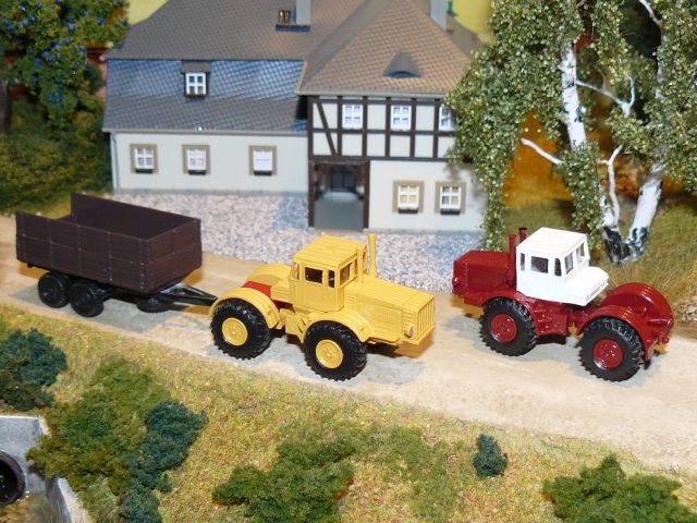 Traktor Kirowez K700 gelborange mit Anhänger und Traktor Kirowez K700 rot/ weiß Studio ALi |
