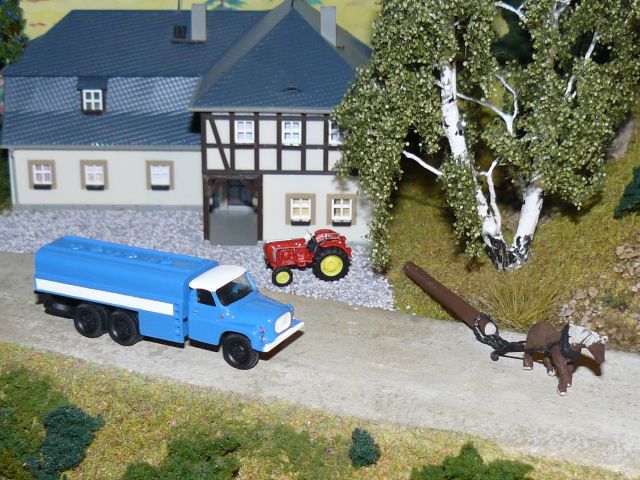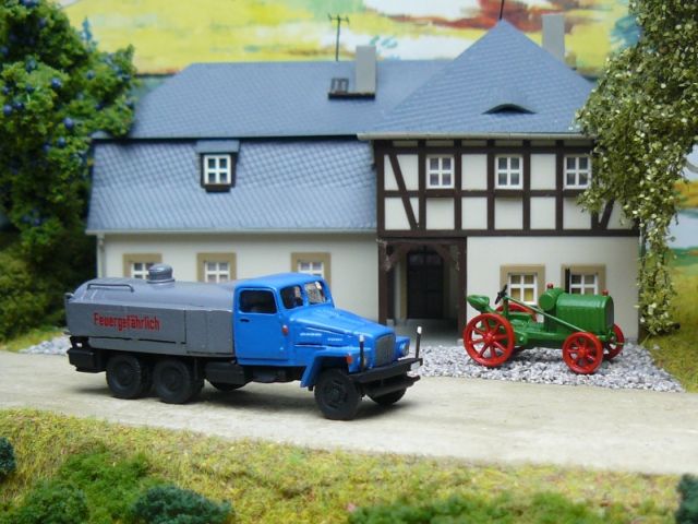 G5-Dieseltankwagen einer LPG und Oldtimertraktor (Sondermodell mit Niederbordwagen der DRG von Tillig) Jano-Modellbau |