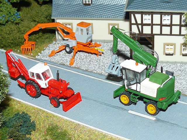 ![]() Baggeranhänger für Traktoren UNHZ 750 und Hydraulikbagger EO-2621A auf Traktorfahrgestell JuMS-6K sowie Ales Marboe Mobilbagger T 188 mit beweglichem Greifer MK (Vertrieb über auTTos.de) |