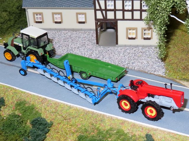 ![]() Traktor ZT 323-A mit Tiefladeanhänger NP 25 sowie Traktor Dutra D4K ohne Kabine Ales Marboe mit B550 Aufsattel-Beetpflug MK (Vertrieb über auTTos.de) |