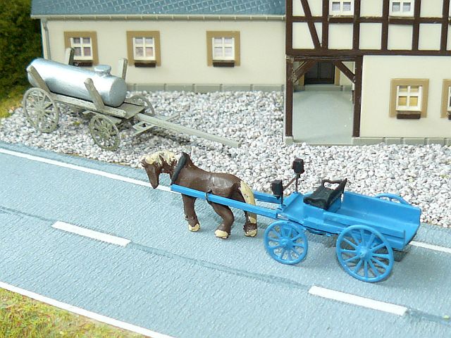 ![]() Wasserwagen und einspänniger kleiner Pferdewagen Permo |